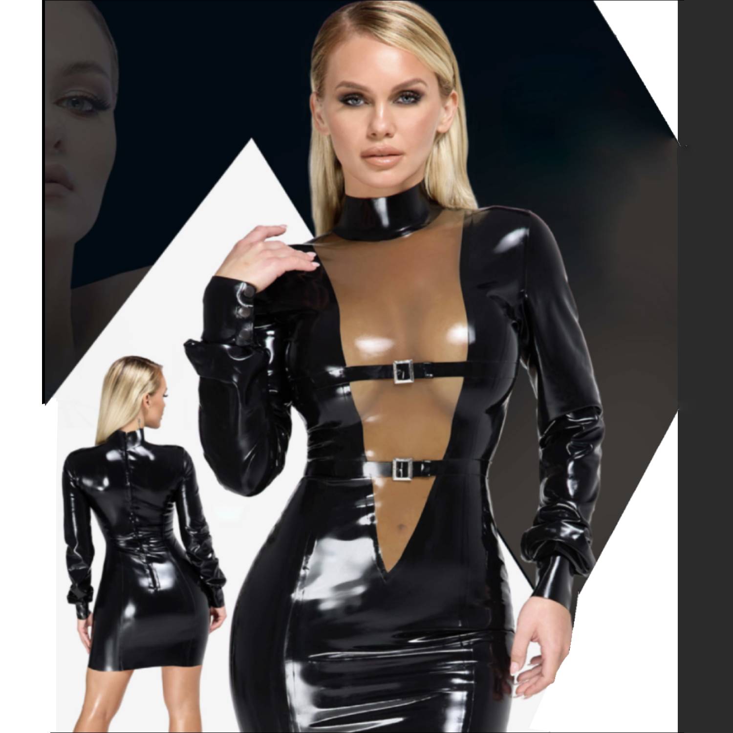 Sexy Lack-Overall mit offenem Kragen