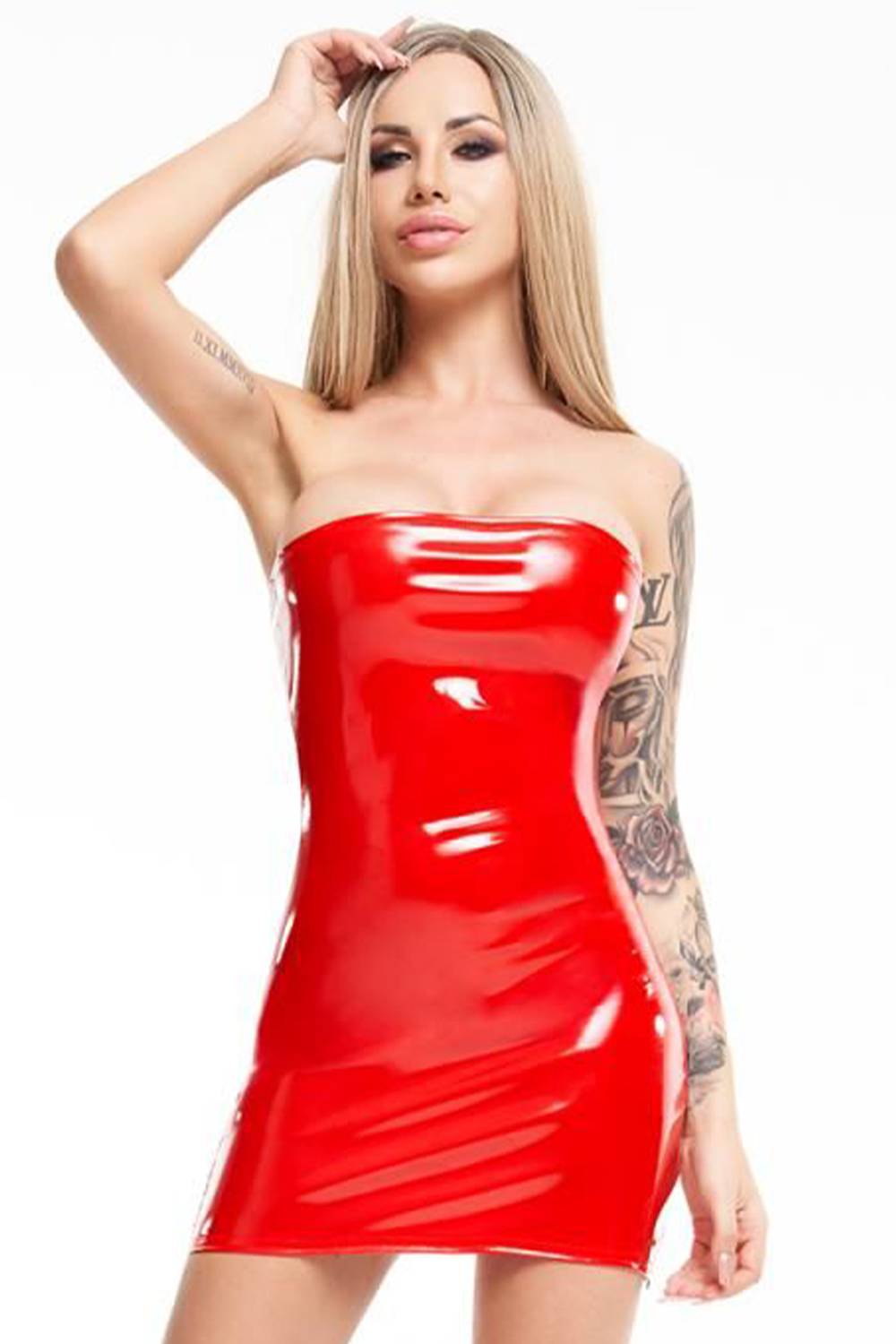 Dieses Etuikleid besteht aus elastischem Vinyl, das leicht und atmungsaktiv ist. Es betont Brust und Hüften und verfügt über einen seitlichen Reißverschluss für einfaches An- und Ausziehen. Perfekt für Ihre nächste Party, Ihr Date oder eine Clubnacht! Hergestellt in der EU!