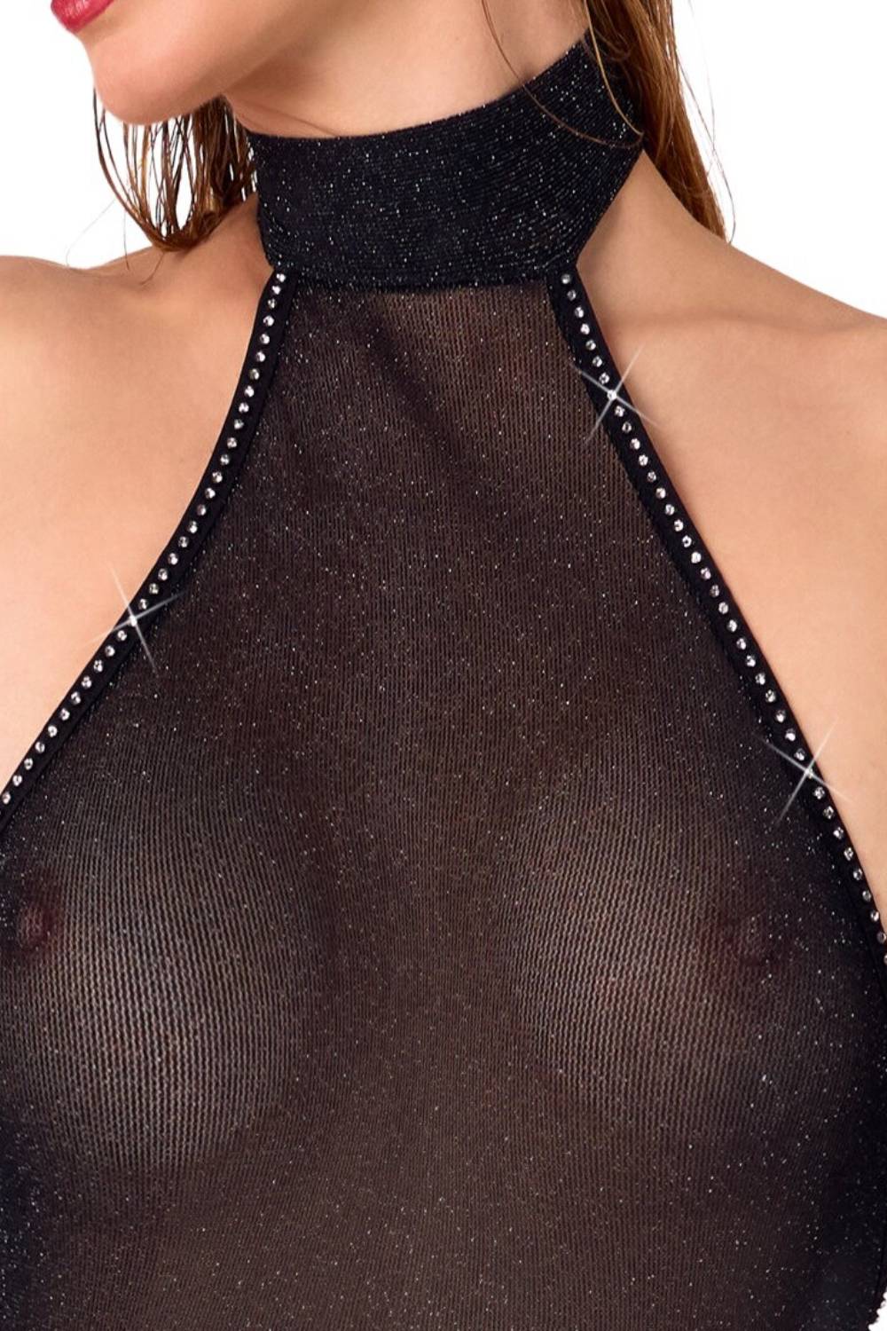 Schwarzer Glitzer-Jumpsuit für Damen, transparenter Jumpsuit, Luxus-Dessous-Jumpsuit, Jumpsuit mit offenem Rücken, Noir Handmade, Onyx Collection, hergestellt in Europa