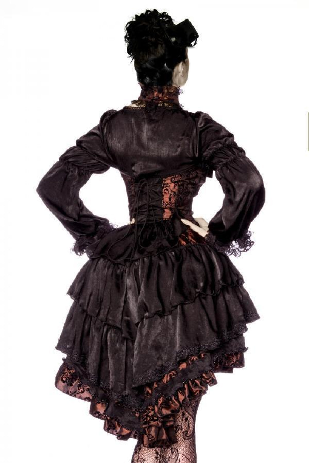 Dieses wunderschöne Vampirkostüm ist aus hochwertigen Materialien gefertigt. Wunderschöner Taftstoff mit Samt und die Brosche machen dieses sexy Vampirkostüm zu etwas ganz Besonderem. Der mehrlagige Rock verleiht dem Kostüm einen echten Barock-Look. Ein integrierter Tüllunterrock und Rüschenärmel mit Faltenbesatz sorgen für einen sexy Effekt. Lange Spitzenärmel mit dekorativer Schnürung im Rücken und ein Reißverschluss für einfaches An- und Ausziehen machen dieses sexy Vampirkostüm zu etwas ganz Besonderem. Inklusive Halskette und Kronenbrosche.