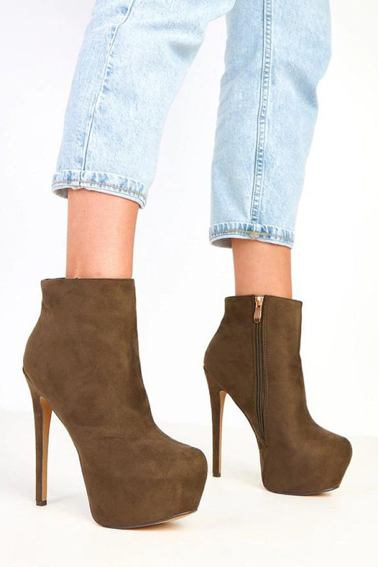 Brown suede ankle boots with platform