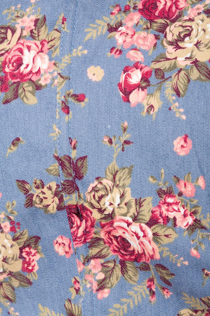 Denim quality with rose print and finished with black lace. The decorative lacing is