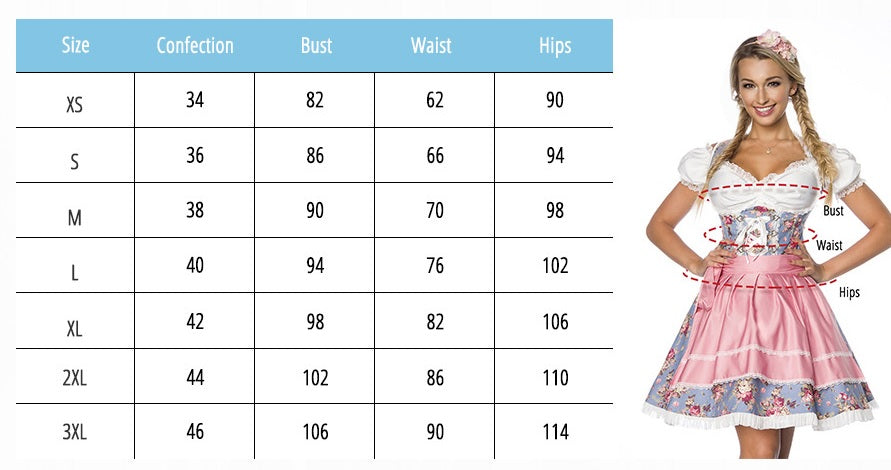 Sexy dirndl set bestaat uit dirndl jurk, drindltop en schort