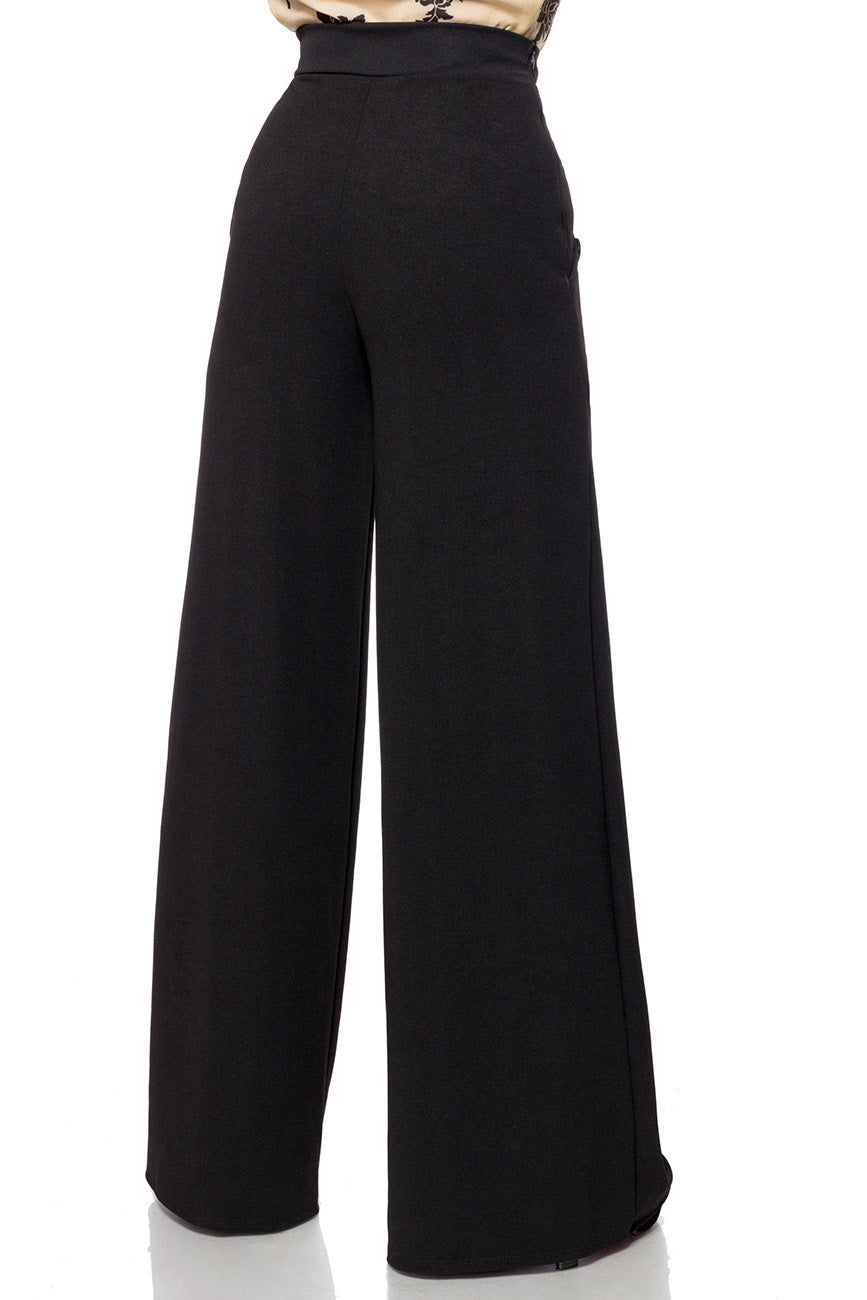 Deze vintage broek is gemaakt van elastische materiaal met hoge tailleband en wijde pijpen.