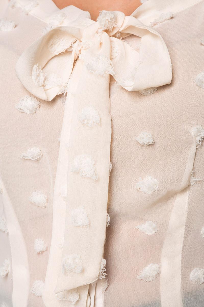 Vintage transparante blouse met strikje beige